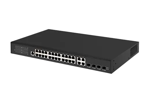 24x0/100/1000M RJ45 PoE (Port 1-2 PoE BT90w), Uplink 4x1000M Combo