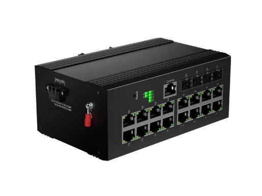 IDSL3LR-04S16GP-Z7 ist ein auf einer DIN-Schiene montierter Industriesc halter, der das Layer 3 Lite-Routing mit PoE-Unterstützung (IEEE 802.3at, 30W) für raue Umgebungen kombiniert. Es ist mit 16x0/100/1000M Ports und 4xGigabit SFP Schnitts tellen ausgestattet. Dank des lüfter losen Wärme ableitung schaltung designs, des breiten Betriebs temperatur bereichs von-40 ° C bis 75 ° C und des hohen Schutzniveaus IP40 bietet es eine hervorragende Leistung in Industrie qualität. hohe und niedrige temperatur toleranz und blitzschutz fähigkeiten. Es integriert verschiedene Protokolle, die für Schalt-und Sicherheits funktionen unerlässlich sind, und unterstützt die ERPS-Technologie (Public Domain Ethernet Ring Protection Switching), wodurch die Flexibilität beim Aufbau von Netzwerken erheblich verbessert und gleichzeitig die Zuverlässigkeit und Sicherheit industrieller Netzwerke gestärkt wird. Dies macht es gut geeignet, um die Bereitstellung sanford rungen in Anwendungen wie Schienen verkehr, intelligenten Städten, intelligenten Transport mitteln, Außen überwachung und anderen rauen Umgebungen zu erfüllen.