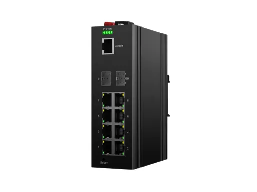IDSL3LR-02S08GP-Z7 ist ein auf einer DIN-Schiene montierter Industriesc halter, der das Layer 3 Lite-Routing mit PoE-Unterstützung (IEEE 802.3at, 30W) für raue Umgebungen kombiniert. Es ist mit 8x0/100/1000M-Ports und 2xGigabit SFP-Schnitts tellen ausgestattet. Dank des lüfter losen Wärme ableitung schaltung designs, des breiten Betriebs temperatur bereichs von-40 ° C bis 75 ° C und des hohen Schutzniveaus IP40 bietet es eine hervorragende Leistung in Industrie qualität. hohe und niedrige temperatur toleranz und blitzschutz fähigkeiten. Es integriert verschiedene Protokolle, die für Schalt-und Sicherheits funktionen unerlässlich sind, und unterstützt die ERPS-Technologie (Public Domain Ethernet Ring Protection Switching), wodurch die Flexibilität beim Aufbau von Netzwerken erheblich verbessert und gleichzeitig die Zuverlässigkeit und Sicherheit industrieller Netzwerke gestärkt wird. Dies macht es gut geeignet, um die Bereitstellung sanford rungen in Anwendungen wie Schienen verkehr, intelligenten Städten, intelligenten Transport mitteln, Außen überwachung und anderen rauen Umgebungen zu erfüllen.