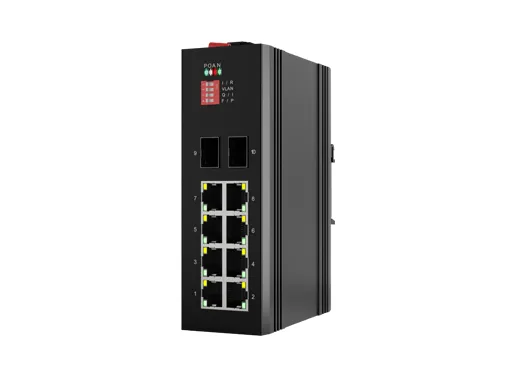IDSAIM-02S08GP-Z6 ist ein nicht verwalteter industrieller Ethernet-Schnell schalter mit 8 × 10/100Base-TX PoE-Ports und 2 × Gigabit-Glasfaser anschlüssen. Es wurde für raue industrielle Umgebungen entwickelt und verfügt über ein gesichtsloses Design der Wärme ableitung schaltung, einen breiten Betriebs temperatur bereich und ein hohes Schutzniveau, das eine außer gewöhnliche Beständigkeit gegen extreme Temperaturen und Blitzschutz gewähr leistet. Diese industriellen Funktionen verbessern die Zuverlässigkeit und Sicherheit des Netzwerks erheblich und machen es zu einer idealen Lösung für den Schienen verkehr, Safe City-Projekte, intelligenten Transport und Bereitstellungen zur Überwachung im Freien.
