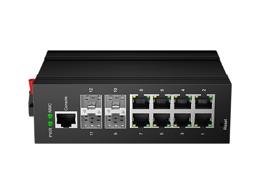 IDSL3LR-04S08GP-Z7, 4-Port-Gigabit-Glasfaser und 8-Port 10/100/1000Base-T verwalteter industrieller Ethernet-Switch mit einem lüfter losen Kühl kreislauf design, einem breiten Betriebs temperatur bereich und einem hohen Schutzniveau. bietet aus gezeichnete industrielle Qualität wie hohe/niedrige Temperatur beständigkeit und Blitzschutz. Es integriert eine Vielzahl von umfangreichen Protokollen für Switching und Sicherheit und unterstützt die ERPS-Technologie (Ethernet Ring Protection Switching), wodurch die Netzwerk flexibilität erheblich verbessert und die Zuverlässigkeit und Sicherheit industrieller Netzwerke verbessert werden. Es eignet sich gut für den Einsatz in rauen Umgebungen wie Schienen verkehr, Initiativen für sichere Städte, intelligenten Transport, Überwachung im Freien und anderen anspruchs vollen Anwendungen.