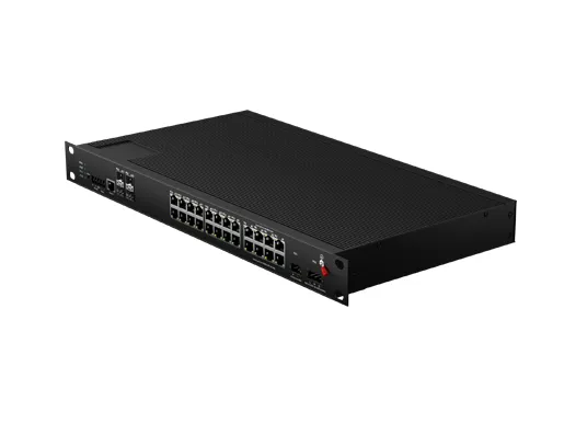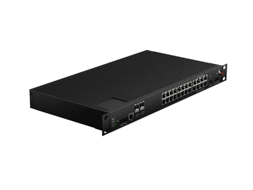 Rack mount Industrial L3 Lite Managed Ethernet Switch unterstützt 24*10/100/1000Base-T und 4*10G SFP Ports, mit lüfter freiem Kühl kreislauf Design, weite Arbeits temperatur-40 °C bis 75 °C, Blitzschutz, integrierte Umschaltung, bietet robuste Vernetzung für unternehmens kritische Anwendungen in rauen Umgebungen. Mit umfangreichen Protokollen hat ERPS die Flexibilität des Netzwerks erheblich verbessert und die Zuverlässigkeit und Sicherheit des industriellen Netzwerks verbessert. Es kann auch die Einsatz anforderungen des Schienen verkehrs, der sicheren Stadt, des intelligenten Transports, der Überwachung im Freien und anderer erfüllen