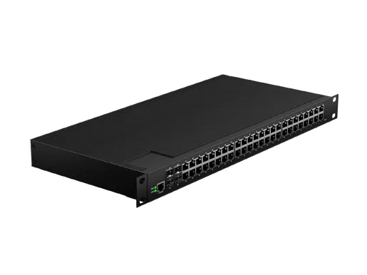 Rack mount Industrial L3 Lite Managed Ethernet Switch unterstützt 48*10/100/1000Base-T-und 4*10G SFP-Ports mit lüfter losem Kühl kreislauf design. Weite Arbeits temperatur-40 °C bis 75 °C, Blitzschutz, integrierte Umschaltung, bietet robuste Vernetzung für unternehmens kritische Anwendungen in rauen Umgebungen. Mit umfangreichen Protokollen hat ERPS die Flexibilität des Netzwerks erheblich verbessert und die Zuverlässigkeit und Sicherheit des industriellen Netzwerks verbessert. Es kann auch die Einsatz anforderungen des Schienen verkehrs, der sicheren Stadt, des intelligenten Transports, der Überwachung im Freien und anderer erfüllen